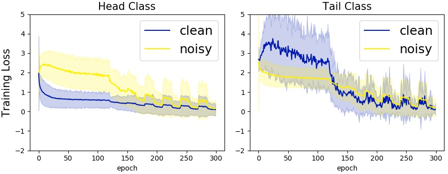 随着人工智能的发展,如何在噪声和长尾数据中训练模型在机器学习中引起了很多关注。然而,当前大多数方法都在理想化的状态下研究如何单独处理噪声或者长尾数据的问题,针对这一科学问题,pg娱乐电子游戏许廷发教授团队率先提出损失值曲线和元学习的方法同时解决噪声和长尾数据,通过大量的计算和实验观察发现,虽然从单个的权重无法区分噪声和尾部样本,但是在样本的整个训练过程生成的损失值曲线能够提供充足的信息区分这两种样本,如图1。