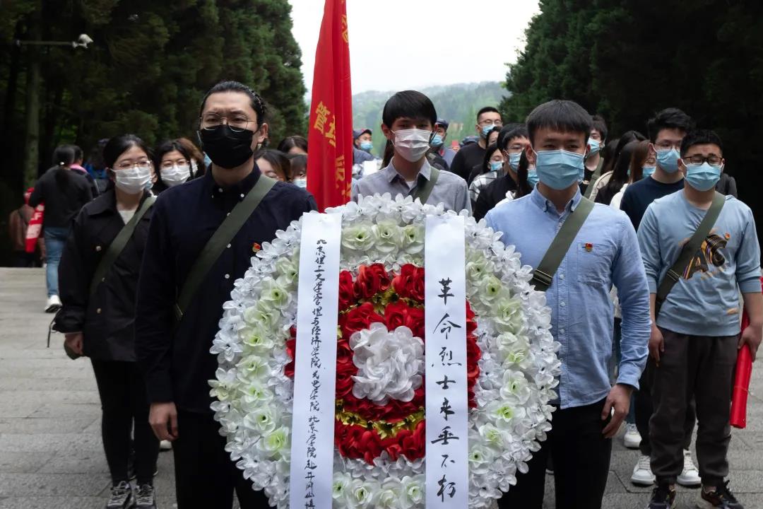 2年零4个月的时间,48000多名英烈英勇献身。花红映山,杜鹃啼血。在烈士陵园,学员们缓步走上108级台阶,向革命烈士敬献花圈、默哀致敬。一张张图片,一个个名字,一组组数据,直击心灵,触动心弦。之后学员们在革命烈士陵园,重温入党誓词。一声声誓词表达着学员们这一代青年人的初心与承诺。