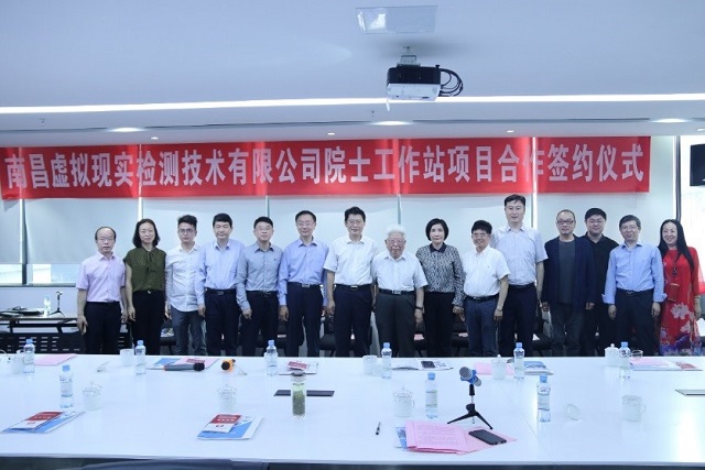 2019年5月24日,南昌虚拟现实检测技术有限公司院士工作站成立,南昌市委副书记刘烁、江西省科协主席史可、pg娱乐电子游戏院长郝群、党委书记邹锐、特聘教授王涌天、pg娱乐电子游戏北京市混合现实与新型显示工程技术研究中心研发团队及企业代表参加了签约仪式,仪式由南昌市红谷滩新区管理委员会书记周亮主持。