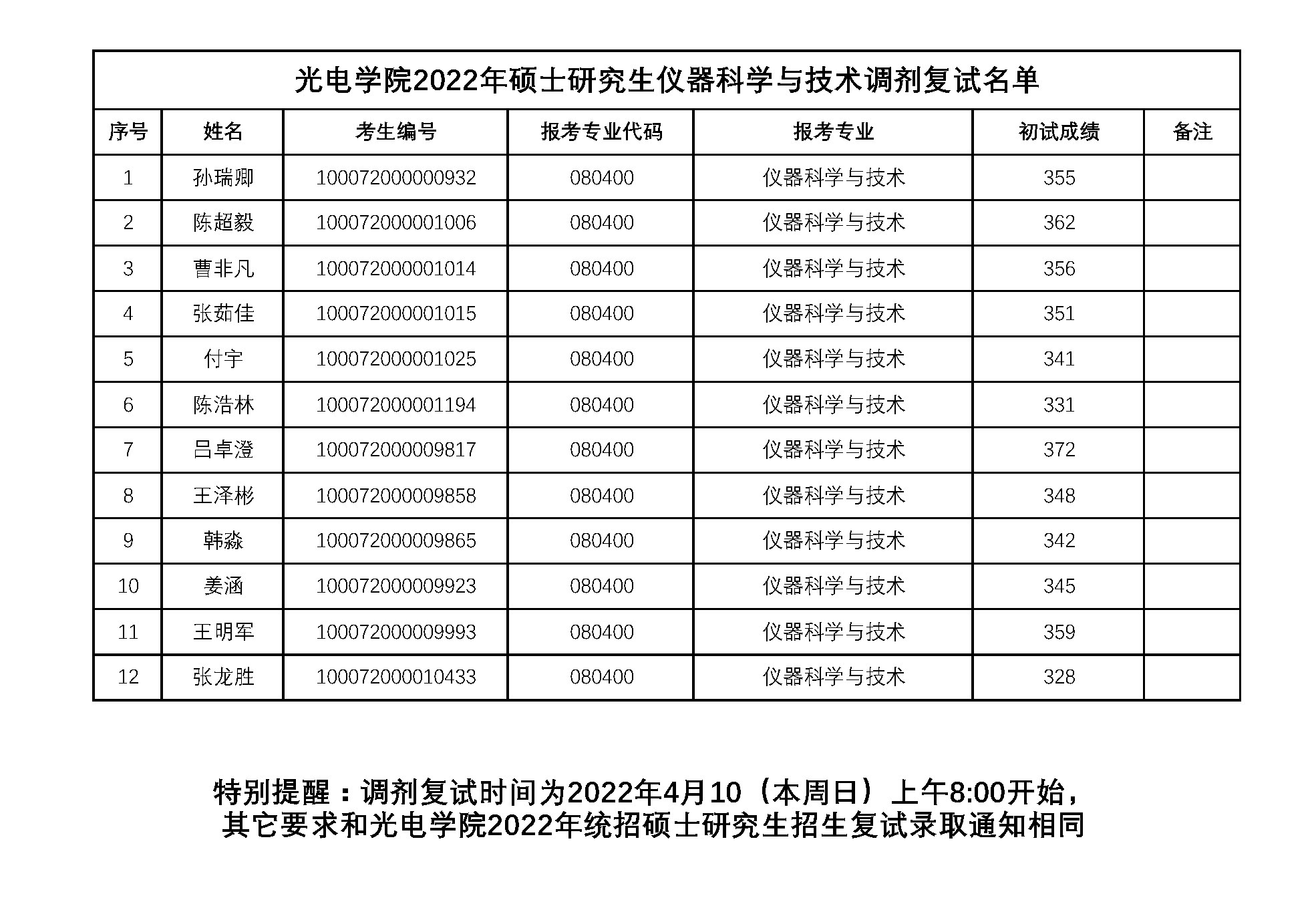 pg娱乐电子游戏2022年硕士研究生仪器科学与技术调剂复试名单