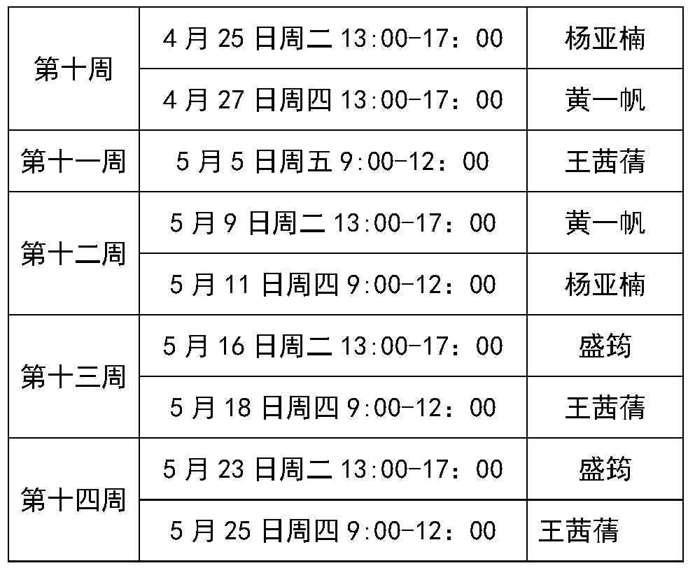 时间:2月23日至5月25日每周两个半天